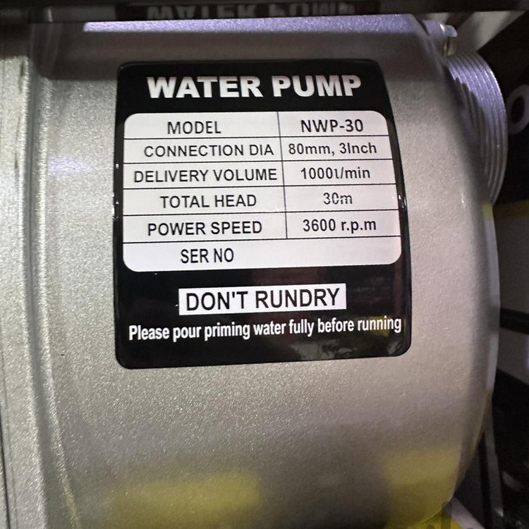 نیاز های مراکز تولیدی، کشاورزان و باغداران و دامداری ها را در امور انتقال و پمپاژ آبهای سطحی تمیز، انتقال آب بین دو مخزن، تخلیه آب استخر و کانال های کوچک را برطرف نماید. موتور پمپ آب بنزینی NWP30 برای عملکرد از سوخت بنزین با ظرفیت مخزن 6.5 لیتر استفاده می کند و قطر دهانه ورودی و خروجی آن 3 اینچ یا 80 میلی متر می باشد، همچنین این موتور پمپ می تواند آب را از ارتفاع 8 متر مکش کرده و تا ارتفاع 26 متر پرتاب نماید.این موتور پمپ جز با کیفیت ترین موتور پمپهای بازار است.