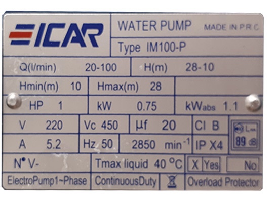 پمپ IM100P از خانوادهٔ پمپهای بشقابی شرکت ایکار (ICAR) است که برای تأمین فشار و انتقال آب تمیز در مصارف خانگی و فضای سبز طراحی شده است. این پمپ تکفاز با توان ۱ اسب و ابعاد جمعوجور، انتخابی اقتصادی برای واحدهای مسکونی و مصارف کوچک صنعتی است.