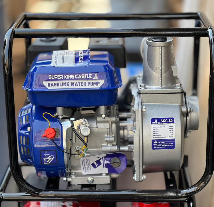 موتور پمپ SKC80 از یک موتور بنزینی قدرتمند بهره میبرد که امکان استفاده در محیطهایی بدون دسترسی به برق را فراهم میکند. سایز ورودی و خروجی ۳ اینچی این دستگاه باعث افزایش دبی آب و کاهش زمان انتقال میشود.